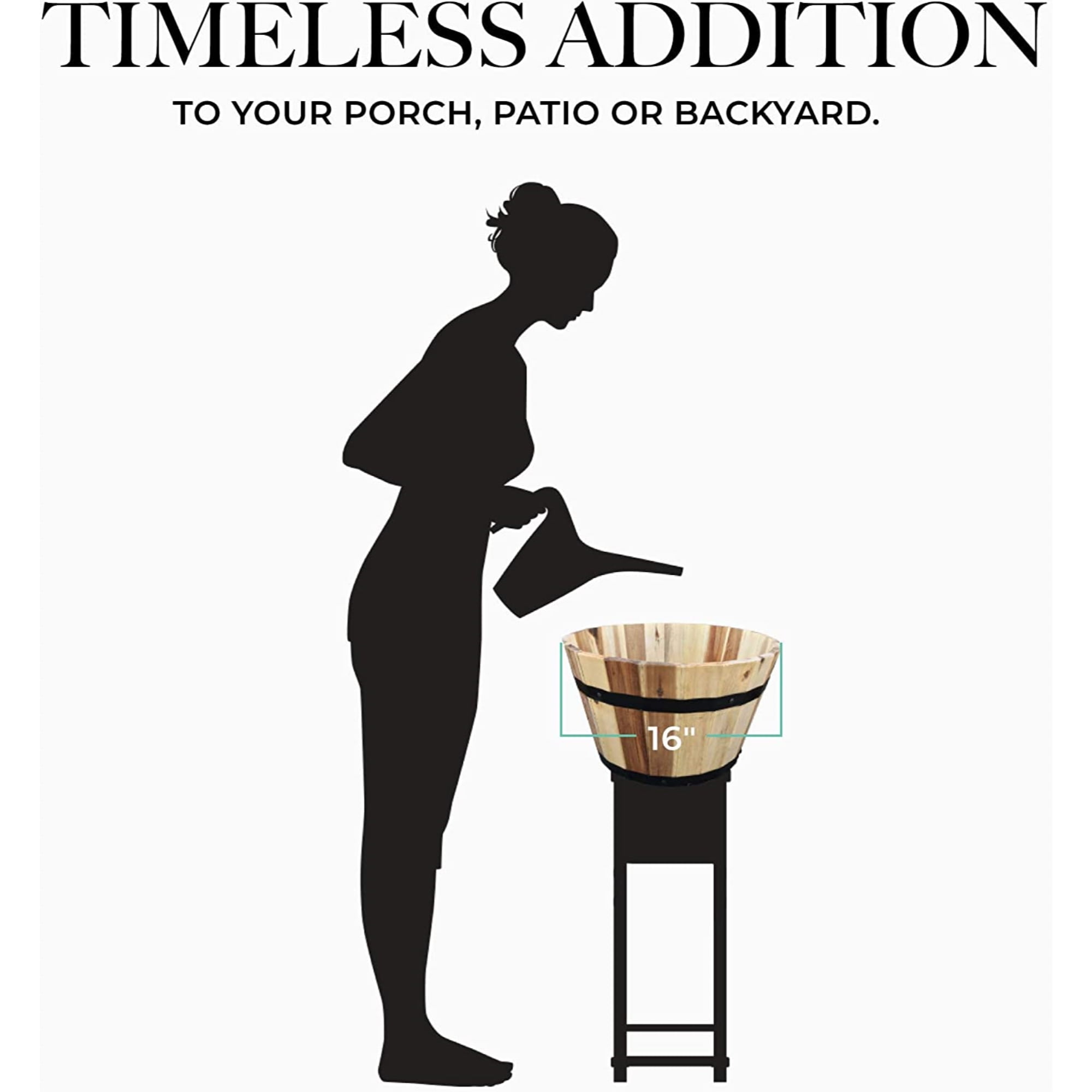 Amazon Com Avera Products Round Wood Barrel Planter 16 Plant Pot Patio Lawn Garden
